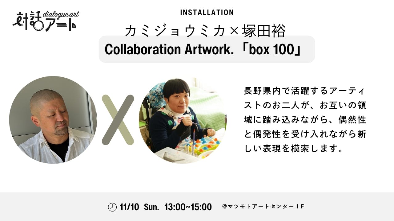 ephyra(夏秋文彦∵中田真由美)による西駒郷の作家との音のコラボレーションやカミジョウミカ×塚田裕 Collaboration Artwork.「box 100」のインスタレーションを予定しています。