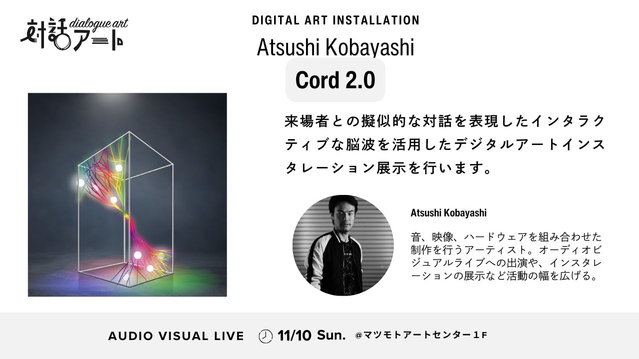 そして新しい表現として脳波を利用したインタラクティブなアートインスタレーション「Cord 2.0」においてデジタル領域の表現や身体表現を通して障がいのある人が障がいのない人と一緒に表現を楽しむワークショップ「身体表現×パフォーマンス」を行う予定です。