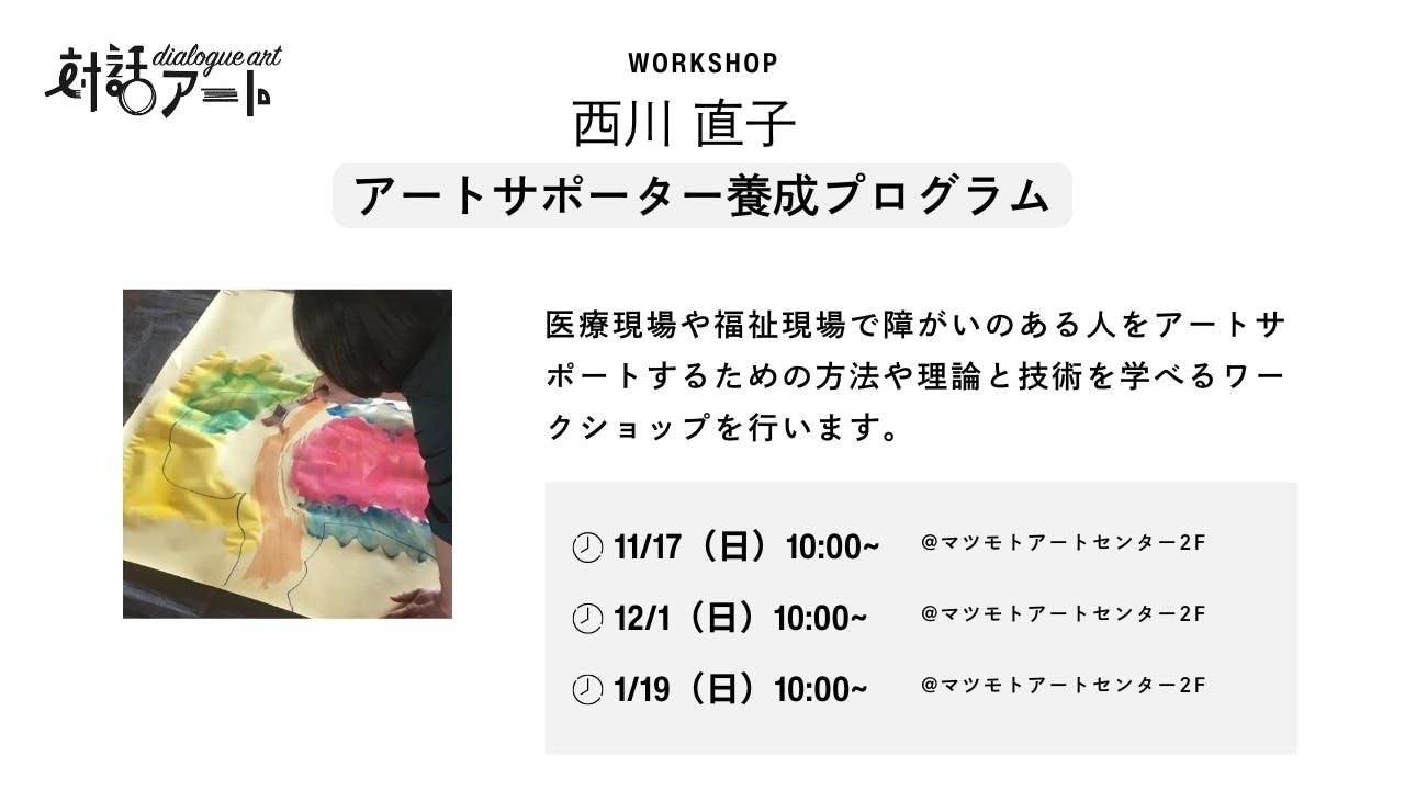 また実験的な取り組みとして、障がいのある人たちの表現を増やすために、サポートする体制を創ることを目指した、アートサポートするための方法や理論と技術を学べるワークショップを行います。